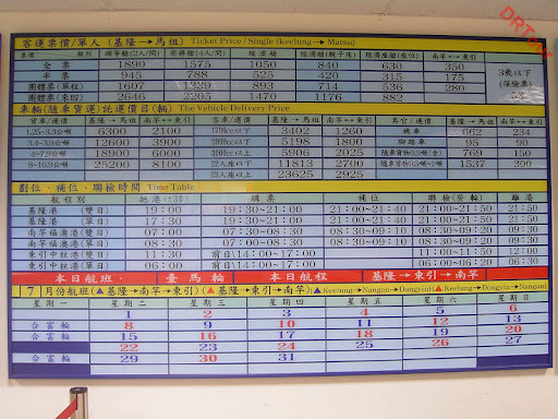 那為什麼我會說"緊張、刺激"呢?其實是指台馬輪的規定!或許是因為航程較長(因為先東後馬或先馬後東的差別,在船上的時間大約8~13個小時不等),所以要特別注意開船當天的海象預告,非得等到當天早上11點,才會公告當天晚上是否由基隆開船,也因此,不論行前規劃做得多麼完備,不論相關物品採購多麼齊全,不論旅館飯店確認的多麼周詳,只要公告一發:今晚台馬輪停航!一切的一切都只換來"沒關係,下次還有機會"的自我安慰啦!